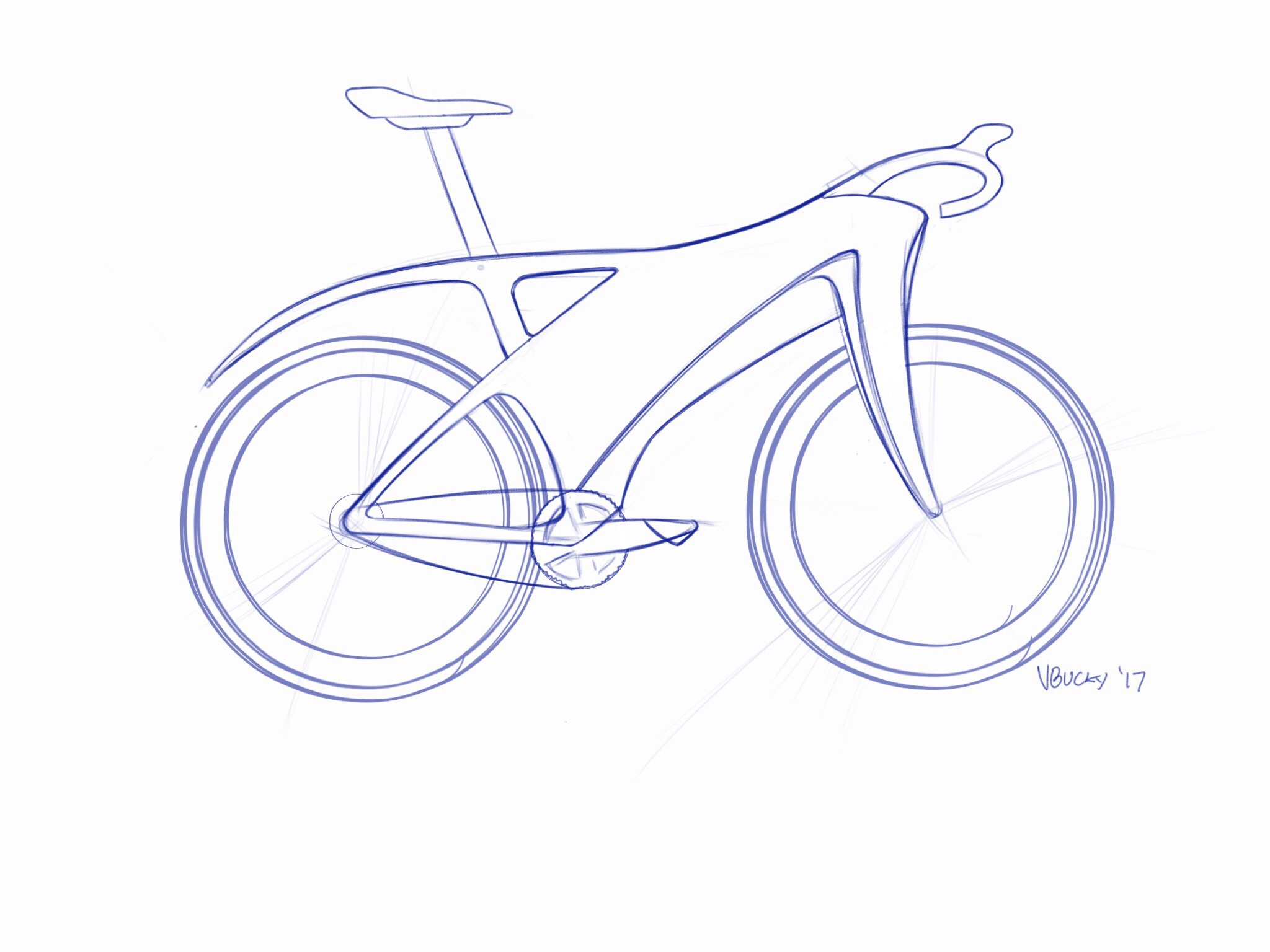 Some linework for a bicycle design that I have been working on for a while, in the background. The bike is a mixed up, a combination of an all season aero inspired road bike, but interestingly the fork, headset area has some strong design language that give it an “S” Vibe. After going through a lot of configurations and geometry tweaks I decided on some classic road wheelbase, I’m imagining that the frame is carbon and the integrated rear fender is cleverly detachable. I played around with the large mid surface and breaking it up a bit, but ended up liking the full encapsulated style, maybe an area for branding but a vey visually different and future style. Sort of reminded me of the Trek Y bikes when they came around in the mid 90’s and how striking they were.