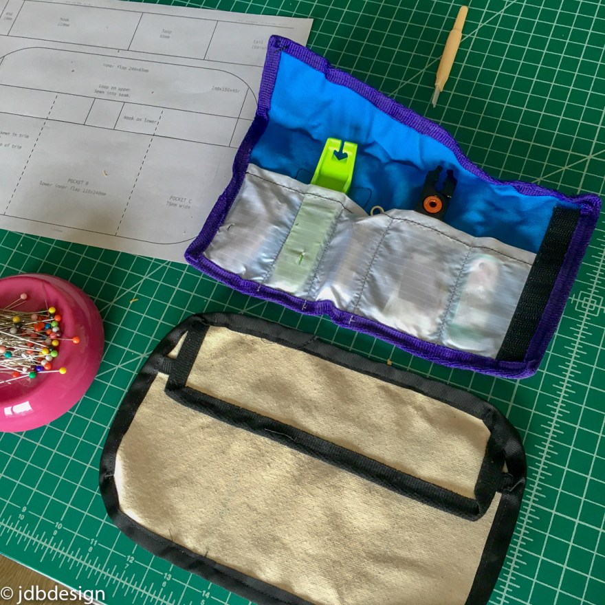 After creating the first canvas proto, I looked at some other designs on the web, many were waxed cotton and I decided I wanted more durability. I had set my mind on a heavy waterproof Cordura and this also allowed me to keep 1 layer, allowing for lighter weight. At some point (not sure when) I became inspired to make clear pockets so you could easily see the contents or lack of. In my prior design, I used a semi transparent sailcloth, but this time I was inspired to go full clear. I found some stretchy sewable PVC film and gave it a go. Onto proto v2:-