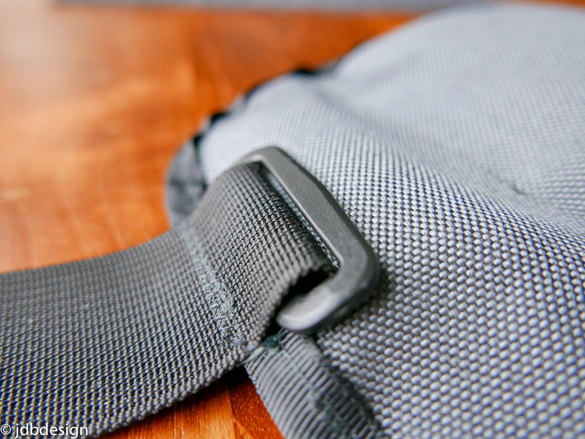 I made the bike attachment strap from a wider Military spec webbing so it can be cinched down hard without fear of breaking, this was important because I wanted it to snug on the bike really tight. Movement and flopping on the bike is not an acceptable option, so I had to mess around with the proportions of hook and loop on the strap. I made it size adjustable by having a double size patch of loop so that the hooks could stick in multi positions.