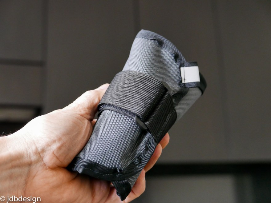 I made the bike attachment strap from a wider Military spec webbing so it can be cinched down hard without fear of breaking, this was important because I wanted it to snug on the bike really tight. Movement and flopping on the bike is not an acceptable option, so I had to mess around with the proportions of hook and loop on the strap. I made it size adjustable by having a double size patch of loop so that the hooks could stick in multi positions.