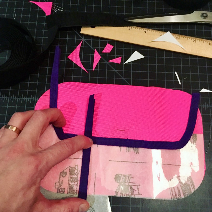 Here are some shots of the inside of the saddle roll. In this case you can see the flap modifications and also the dividers between the pockets is different. In this version I experimented with a different bias tape in purple, its a little thicker and harder to sew with.