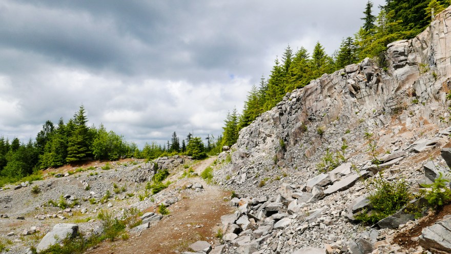 From the new Douglas Trailhead, hike past the trail sign along a new 0.5 mile section of trail (built by volunteers in 2014) that soon traverses above the old Wildcat Quarry. Soon, the trail emerges on an open cliff top, with fine views into the Eagle Creek Canyon below and Wildcat Mountain above.