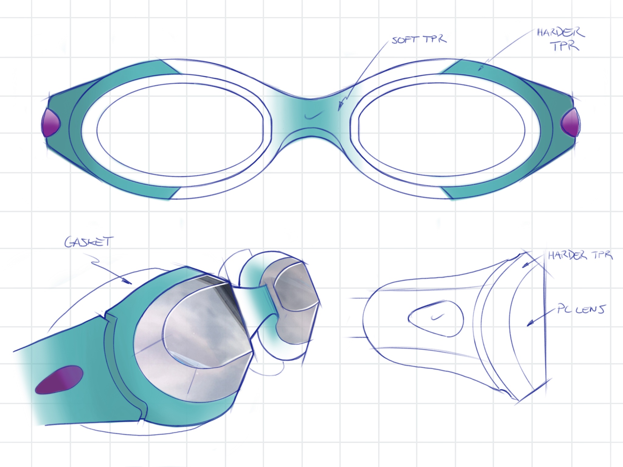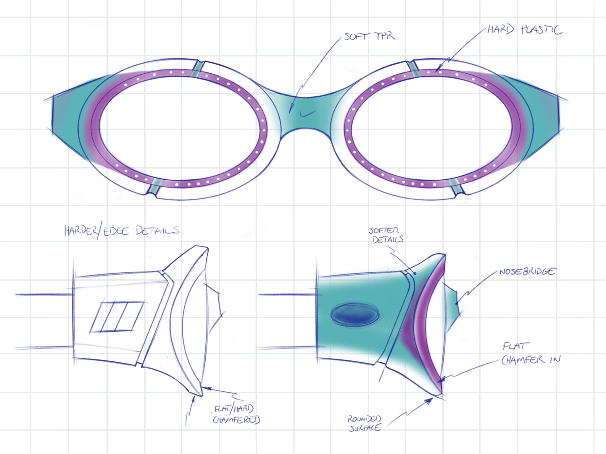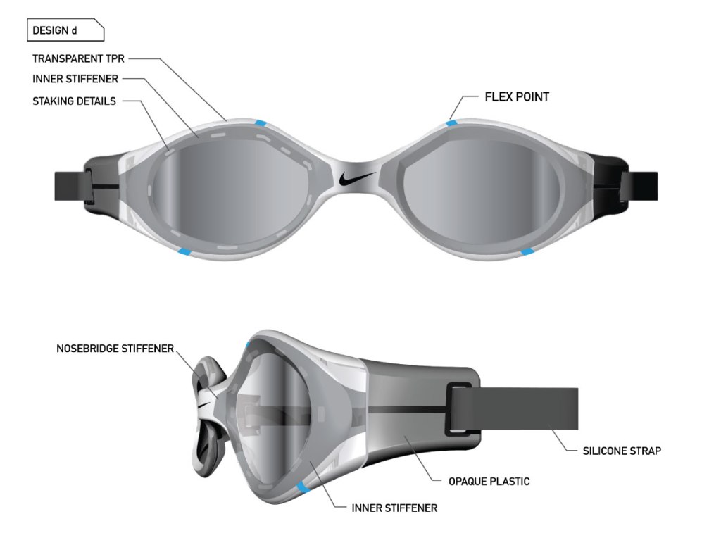 Swim Nike Inspirations, sketches, development, CAD and solutions for NIKE swimming products. Swim Mask (Leap Project) Training Goggle (Stretch Project) Cushioning (Step Project)